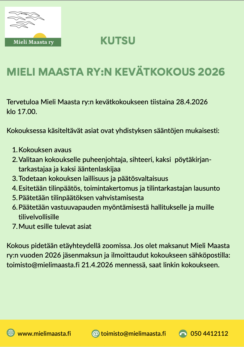 Osallistuitko Mieli Maasta ry:n toimintaan vuonna 2025? Vastaathan palautekyselyyn, kiitos!